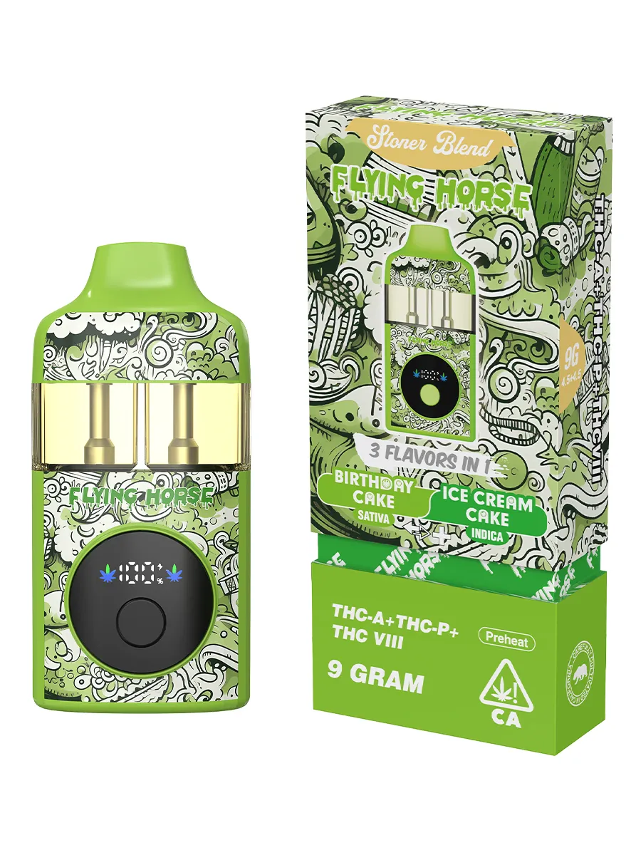 The Flying Horse Stoner Blend 3in1 Disposable combines strain variety, high potency, and innovative design for a one-of-a-kind experience. Whether you’re craving the uplifting burst of Birthday Cake or the relaxing calm of Ice Cream Cake, this device has you covered. Order now from our online headshop, Olofly, and explore flavorful clouds with every puff.