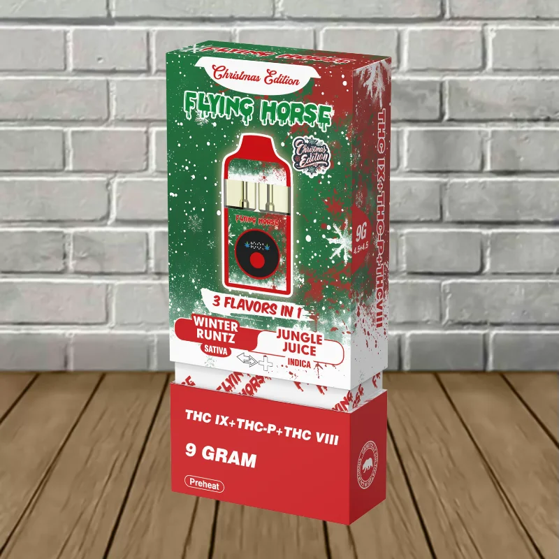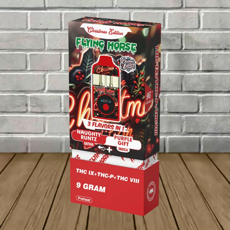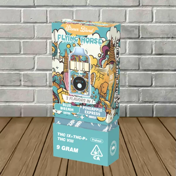 Flying Horse Stoner Blend Black Edition contains an ultra-potent 9g blend of THCa, Delta 9 THCP, Delta 8 THC, and unique flavor-packed terpenes. This device offers a sophisticated and potent vaping experience by perfectly fusing innovative technology with premium ingredients.