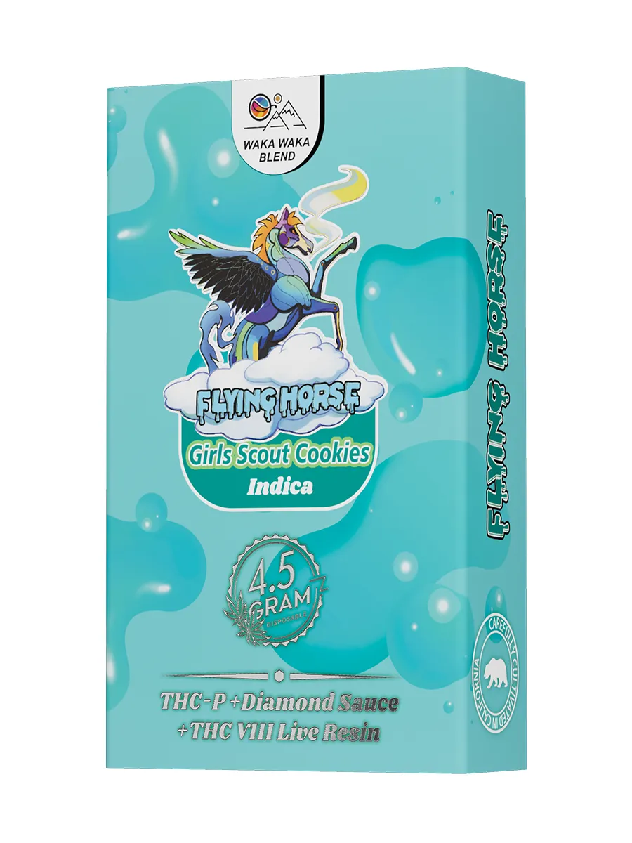 The Girl Scout Cookies Flying Horse THC Waka Waka Blend Disposable 4.5G is more than just a vape; it’s a portable gateway to experiencing one of the most cherished cannabis strains in the world. Whether you’re looking to enhance a night in or elevate social interactions, this vape provides a robust, flavorful, and satisfying session. Order from our online headshop, Olofly!