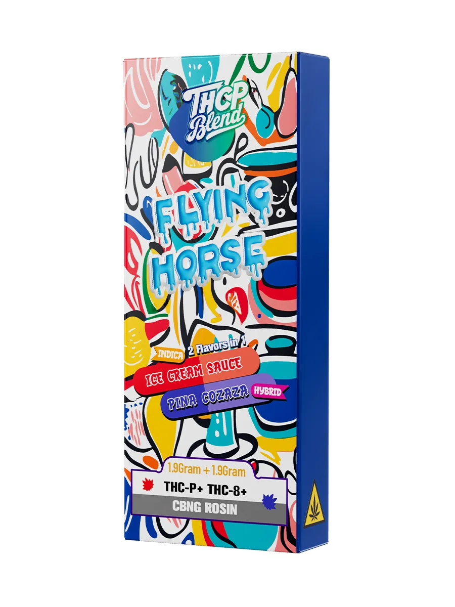 Flying Horse 3.8G THCP 2-in-1 Disposable – Ice Cream Sauce & Pina Cozaza offers a premium and flavorful vaping experience, combining the potent effects of THCP with the sweet and creamy notes of Ice Cream Sauce and the tropical freshness of Pina Cozaza. Each disposable device is pre-filled with 3.8 grams of high-quality extract, providing a smooth, flavorful, and long-lasting vape experience.