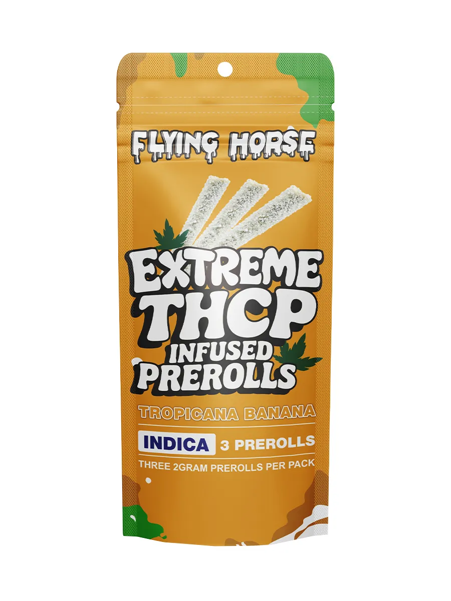 Order now from our online headshop, Olofly, and enjoy the sweet, potent, and relaxing effects of the Tropicana Banana Flying Horse Extreme THCP Infused Pre-Rolls 3ct!